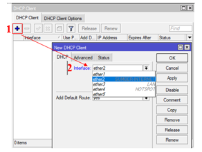 a)Ether2: Using DHCP Client from ISP (Internet Service Provider)
