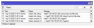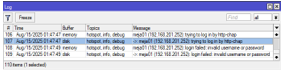 Figure 25. Monitoring Invalid Username and Password in Winbox