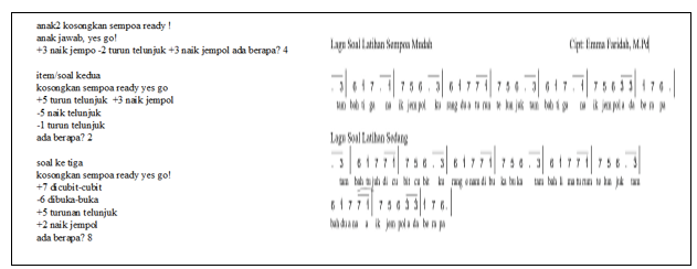 Figure 2. Contoh Soal Sempoa dan Notasi Lagu Soal Latihan Sempoa di RA Persis Bangil