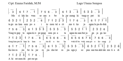 Figure 1. Notasi Angka Lirik Lagu Utama Sempoa