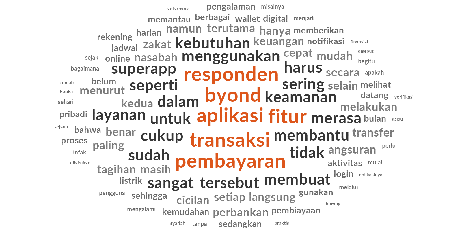Based on the results of word frequency analysis, the words that appear most frequently are application, respondents, features, transactions, BYOND, and payments. These results indicate that most respondents focus primarily on their experience using digital banking applications, particularly in relation to the ease and functionality of transaction and payment features on the BYOND by BSI application. The dominance of the words “features,” “transactions,” and ‘payments’ indicates that users place greater emphasis on the core functionality of the application, namely the ease of conducting daily financial transactions. In addition, the high frequency of the word “respondents” confirms that this study is user-centered, where user opinions and experiences form the basis for assessing the quality of digital banking services. This reinforces the relevance of this research, as the aspects assessed by respondents are in line with the variables to be compared, namely feature effectiveness, transaction convenience, and digital service quality. Thus, these word frequency results show that the focus of respondents' discussions is closely related to the objectives of the comparative study. This finding is an important basis for comparing the performance and quality of core features between BYOND by BSI and Bale by BTN, particularly in terms of meeting the needs of fast, easy, and practical digital transactions for users.