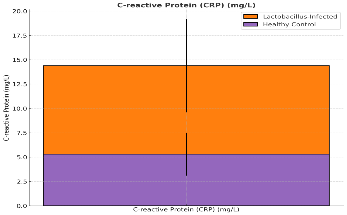 Figure 7. Figure 7: Comparison of C-reactive Protein (CRP) (mg/L) between Lactobacillus-Infected Pregnant Women and Healthy Controls