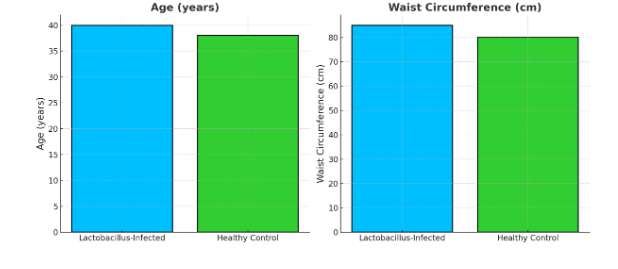 Figure 1. Figure 1:Comparison of Age and Waist Circumference Between Lactobacillus-Infected Individuals and Healthy Controls"