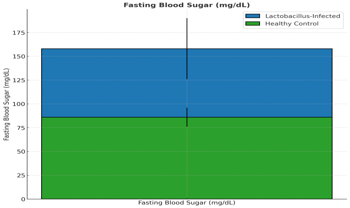 Figure 2. Figure 2: Comparison of Fasting Blood Sugar (mg/dL) between Lactobacillus-Infected Pregnant Women and Healthy Controls