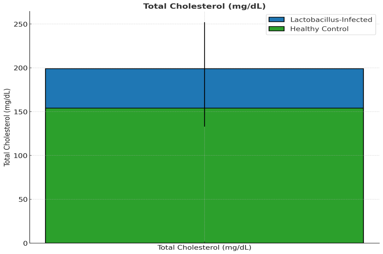 Figure 3. Figure 3: Comparison of Total Cholesterol (mg/dL) between Lactobacillus-Infected Pregnant Women and Healthy Controls