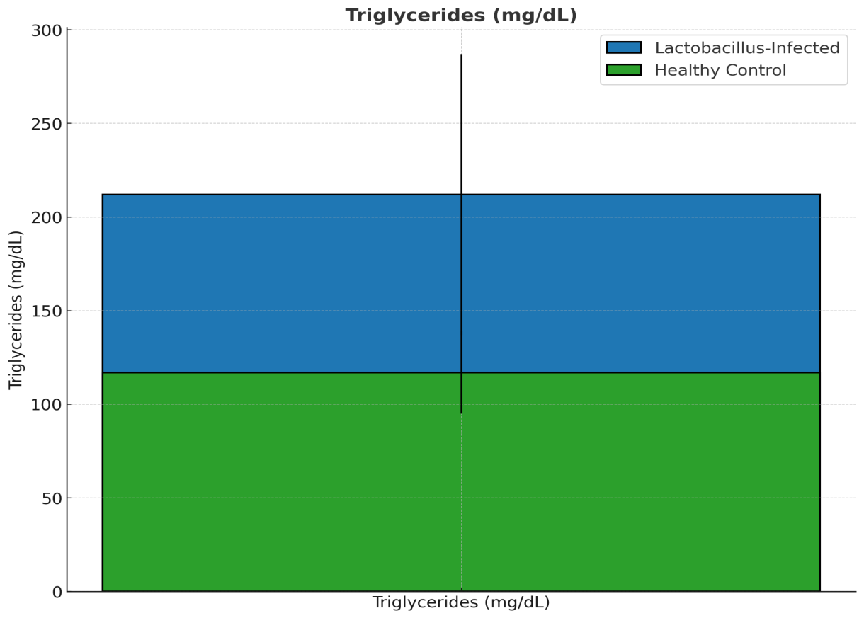 Figure 4. Figure 4: Comparison of Triglycerides (mg/dL) between Lactobacillus-Infected Pregnant Women and Healthy Controls