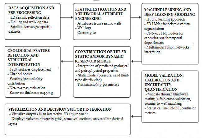 | Data Acquisition & Pre-Processing | Seismic, well logs, satellite data | Filtering, normalization, interpolation | Clean unified dataset |