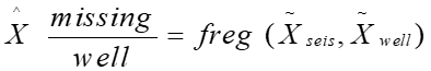 Petrophysical properties y at well locations are first predicted using supervised learning:
