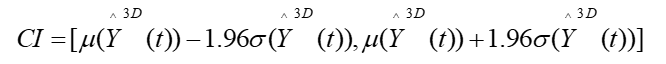 is the corresponding predictive standard deviation that reflects model uncertainty. The constant 1.96 is used because, under the assumption of an approximately normal distribution of prediction errors, 95% of the true values are expected to fall within ±1.96 standard deviations of the mean.