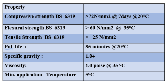 In this research, the Jordanian epoxy resin (Quick mast 105) originated par excellence from Fosroc Company was used, which is in the liquid state and can be polymerized and converted to the solid state by adding hardener of the same type of resin, as the solider is distinguished by being a light liquid with low viscosity, density and transparent yellow color, the ratio of the hardener to the resin is (3:1) as the table (1) shows) Some of the properties of the epoxy used. The duration of the resin to harden is more than (3) hours at room temperature, as it is left for two weeks to complete the treatment (Full Curing), and then the samples are cut within the standard specifications of the tests used in the research. The epoxy used is characterized by its low density and low viscosity, and it has a high adhesive property. High Chemical Resistant.