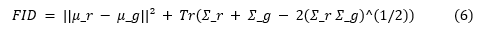 Assesses distribution similarity between real and generated gait sequences by Fréchet Inception Distance (FID):