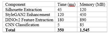 - Model Storage: 1.2 GB (StyleGAN2 + DINOv2 + Classifier)