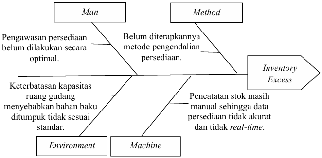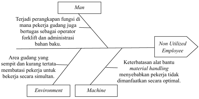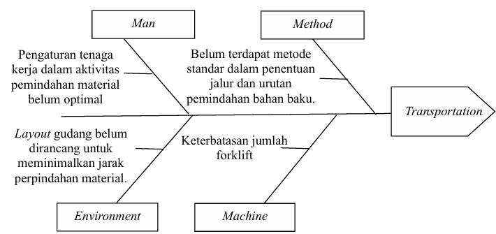 Pemborosan yang telah diidentifikasi akan dianalisis satu per satu di setiap faktor (man, material, metode, machine, environment) agar dapat diketahui faktor penyebab dari pemborosan yang terjadi di gudang bahan baku PT XYZ.