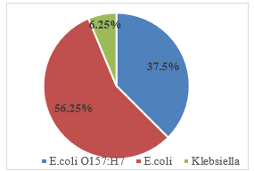 Enterobacteriaceae represent a large and diverse group of bacteria, most of which naturally reside in the intestines of humans and animals [1]. This family includes over 30 genera and 120 species; however, more than 95% of clinically relevant strains belong to only 10 genera and fewer than 25 species. Species classification is based on phenotypic traits such as carbohydrate fermentation patterns and amino acid bond degradation Intestinal bacteria thrive on simple media and are mostly facultative anaerobes. They grow rapidly, forming colonies on solid media and causing turbidity in liquid media within 12-18 hours of incubation. All intestinal bacteria ferment glucose [3]. Among them, Escherichia coli is categorized into pathogenic and non-pathogenic groups. While non-pathogenic E. coli coexists harmlessly in the intestines of warm-blooded animals, they can occasionally cause opportunistic infections. Pathogenic E. coli strains, however, invade the epithelial lining of the large intestine, multiply within host cells, and spread to adjacent cells, leading to tissue damage. This process manifests as diarrhea accompanied by blood, mucus, and abdominal pain [4,5]. Key pathogenic mechanisms include the formation of attachment and effacing (A/E) lesions, which are encoded by chromosomal genes located at the Locus of Enterocyte Effacement (LEE). This destruction reduces intestinal mucosal absorption, disrupts electrolyte balance, and results in diarrhea [6]. E. coli O157:H7, a zoonotic pathogen, is a leading cause of foodborne outbreaks. Ruminants, particularly cattle, are primary carriers of this serotype. Humans are typically infected through contaminated food (e.g., meat, milk, fruits, leafy vegetables), water, or contact with infected individuals or animals. E. coli O157:H7 is frequently implicated in foodborne illnesses, breaking down the intestinal mucosa and producing Shiga toxin (Stx), which causes hemorrhagic colitis and hemolytic-uremic syndrome [7]. The A/E phenotype is regulated by pathogenicity islands (PAIs), specifically at the LEE locus. Both A/E and Stx expression are influenced by complex regulatory mechanisms, including environmental signals and key proteins critical for host colonization, particularly in cattle [8]. These bacteria carry the hlyA gene, located on a plasmid, which encodes enter hemolysin A. They also possess the eaea gene on their chromosome, encoding the adhesive protein Intimin, crucial for molecular diagnostics of E. coli O157:H7 [9]. Discovered in 1945 as a cause of infantile diarrhea in England, E. coli O157:H7 causes infections ranging from mild diarrhea to hemorrhagic colitis and hemolytic-uremic syndrome (HUS) [10]. The bacteria produce two toxins—Shiga toxin (Stx) and vero toxin (VT)—encoded by stx1 and stx2 genes, respectively. Furthermore,The virulence of E. coli O157:H7 is largely attributed to its production of two potent cytotoxins: Shiga toxin (Stx) and vero toxin (VT). These toxins are encoded by bacteriophages—viral elements integrated into the bacterial genome—which play a crucial role in the horizontal gene transfer of virulence factors. Upon release, Stx and VT target endothelial cells, particularly in the kidneys and intestines, leading to inflammation, vascular damage, and systemic complications characteristic of HUS. The public health significance of E. coli O157:H7 continues to prompt research into its pathogenic mechanisms, routes of transmission, and strategies for prevention and treatment.
