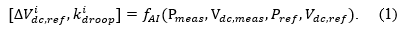 The Secondary Level is the main coordinator and it works on a timescale of seconds. It uses an AI-based controller (either in the form of a single deep neural network (DNN) or a multi-agent Deep Reinforcement Learning (DRL) system). It performs the dynamic reconciliation of the setpoints of the Tertiary Level to the conditions of the real-time systems. It is fed with internal measurements (e.g., ) and computes compensatory adjustments, and adaptive droop coefficients, . This guarantees optimal transmission of power between converters, no steady state voltage errors due to primary droop, and stability worldwide in the face of major disturbances. The control law may be in the form of a mapping that is learned by the AI as (1):