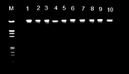 To verify that DNA was present, genomic samples were tested on a 1% of gel. Figure 2 shows the DNA bands found for the ten species belonging to the Brassica genus after extraction. This is evidence of the success of the extraction process from the plant leaves of the studied species.